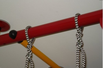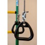 Гимнастические кольца выполняются из пластика – они гладкие, прочные и удобные доя хвата. В навесном оборудовании используется шнур диаметром 10 мм, что соответствует требованиям ГОСТа. Крепление этого спортивного элемента рекомендовано к боковым трубам шведской стенки.