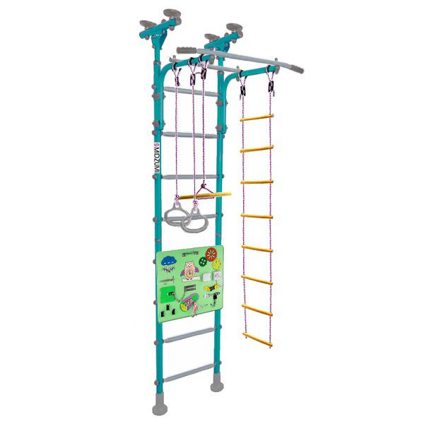 Детский комплекс для занятий спортом с домашних условиях Banji Busyboard поможет ребенку подружиться со спортом, а также ускорит приобретение малышом необходимых в жизни навыков. Это не просто спортивный уголок, а возможность позаниматься на гимнастических кольцах, освоить веревочную лестницу или покататься на тарзанке – 3 развлечения в одном месте, и все это займет совсем немного места.