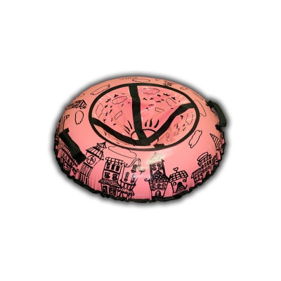Тюбинг Machi – нежно-розовая «ватрушка» с графичным рисунком сказочного города, словно нарисованного детской рукой.